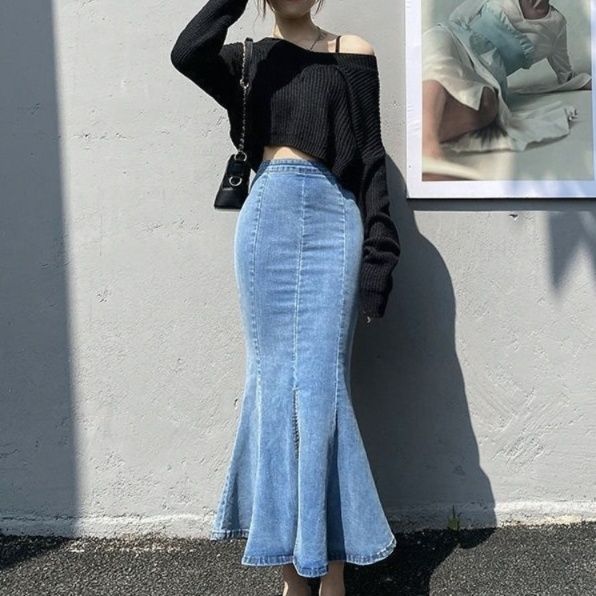 マーメイドスカート特有の美しいシルエットを保ちながら、デニムの親しみやすさが日常使いにも最適です。
