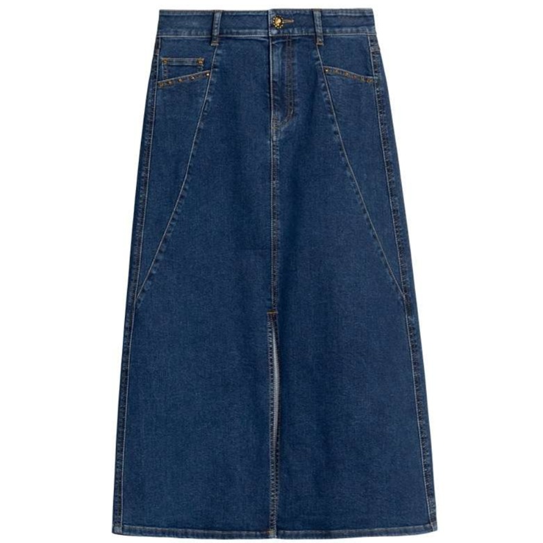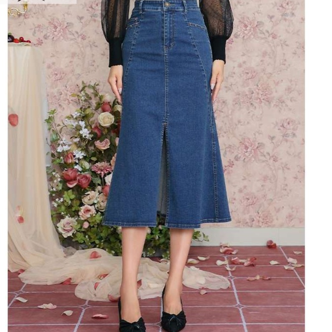 なめらかなデニム生地を使用したマーメイドスカート。ふんわりとしたシルエットが女性らしさを引き立て、上品な丈感で洗練された印象を与える。フロントスリット設計により動きやすさも兼ね備え、デイリースタイルをクラスアップする一着。カジュアルからエレガントまで幅広くコーディネートできる、マストアイテム。